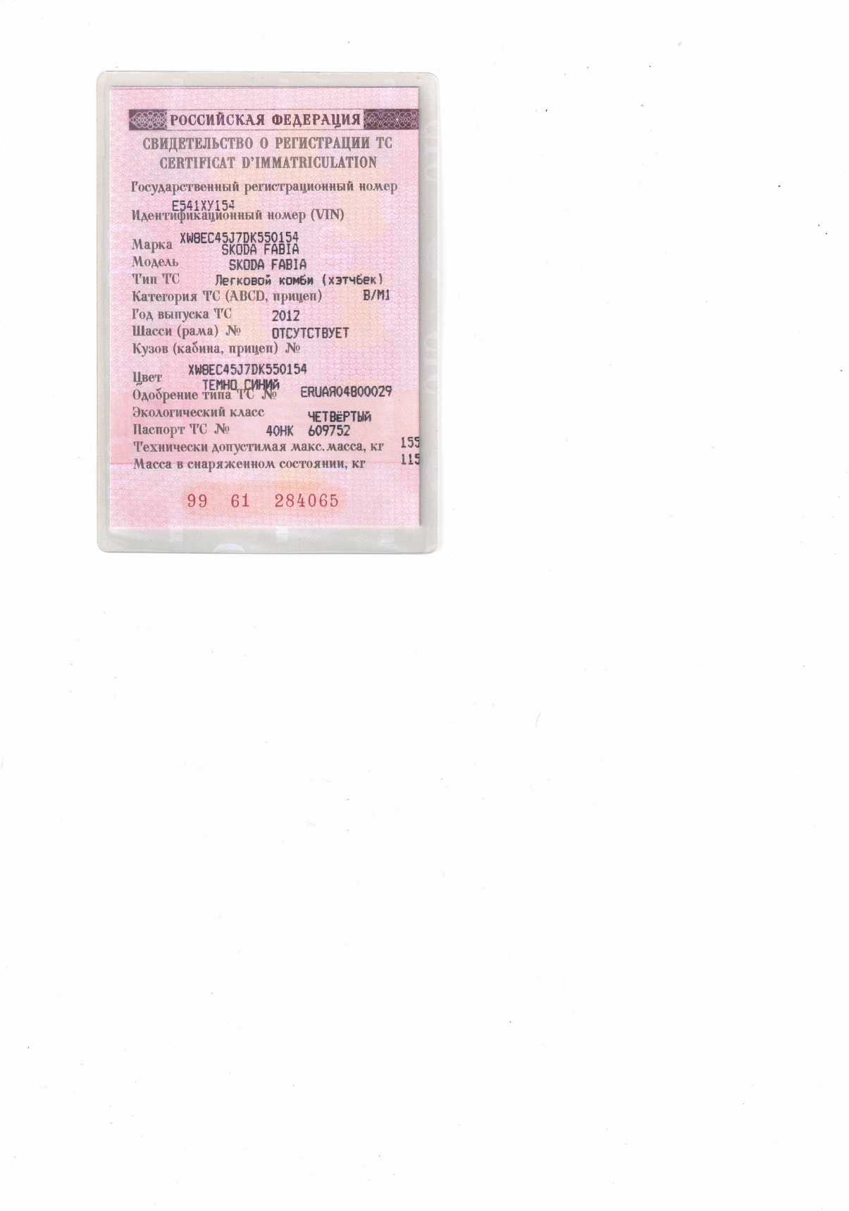 VIN номер XW8EC45J7DK550154
