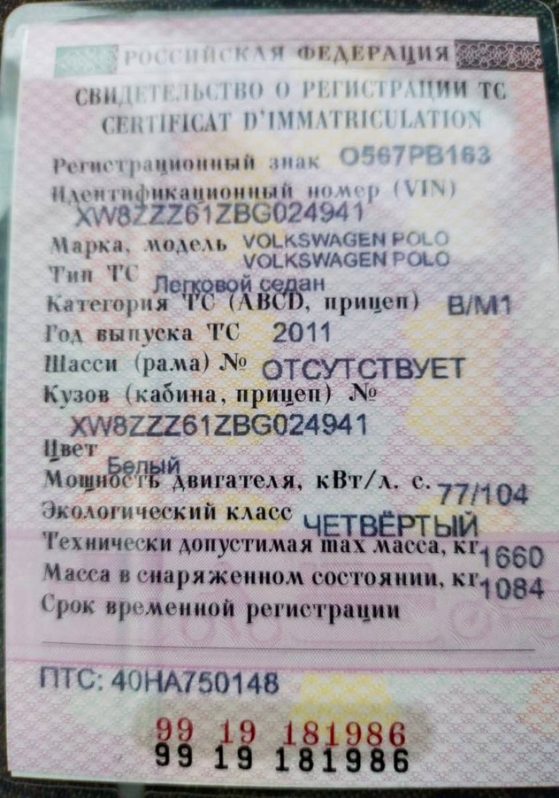 Polo 2011 г.в. VIN-номер