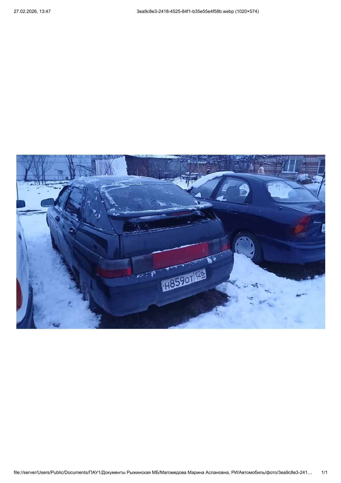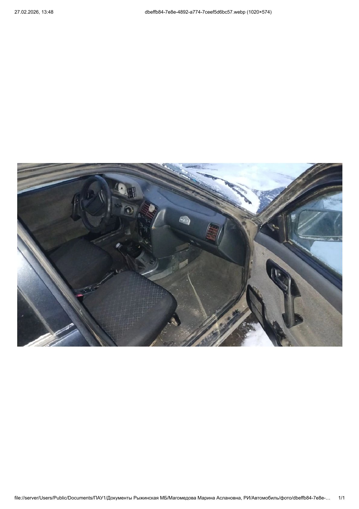 автомобиль находится в нормальном техническом состоянии, заводится. Ввиду того, что транспортное средство долгое время не передвигалось, колеса спущены, Адрес местонахождения: Ставропольский край, Кировский район, ст. Марьинская, ул. Крайняя д.10 кв.2