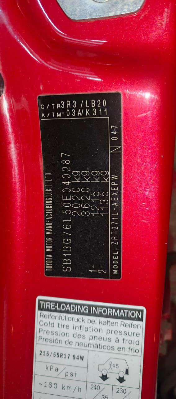 Автомобиль марки TOYOTA модель Avensis 2010 г.в. VIN-номер SB1BG76L50E040287