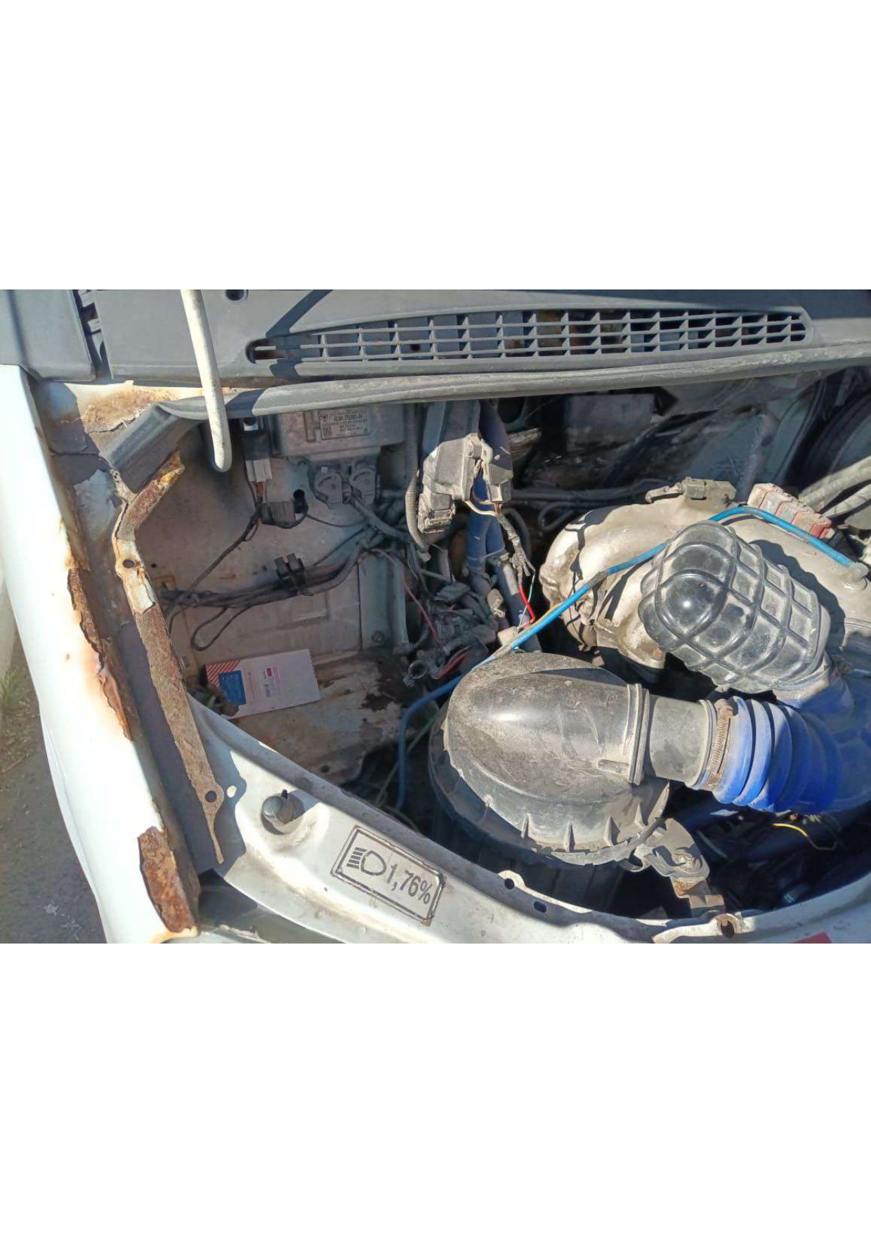 Обломлена тяга рулевого управления. Спущены все четыре колеса. Незначительная деформация кузова по левому борту. Разбит задний левый фонарь. Оборваны шпильки крепления электромуфты, что привело к неоднократному слёту ремня генератора и помпы, в связи с чем было неоднократное закипание двигателя и перегрев. Мотор требует капитального ремонта.